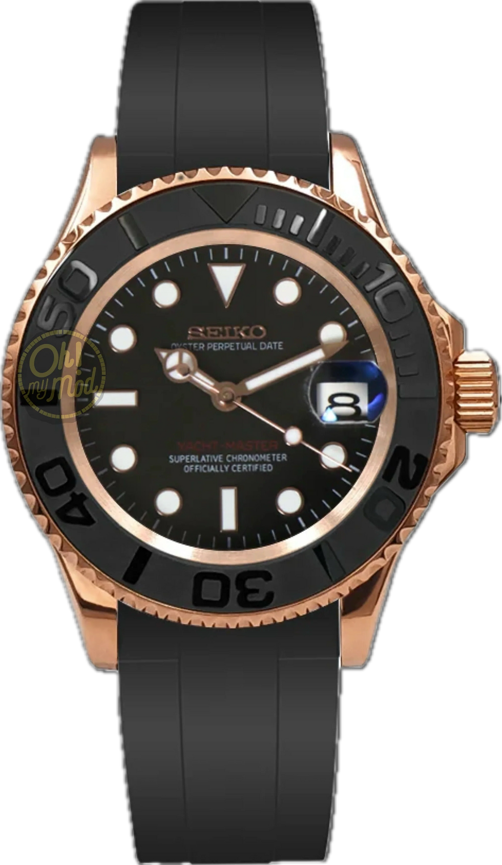 Seiko Submariner Rosegold Black Dial Rubber Strap